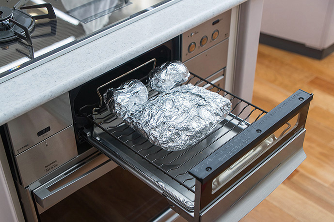 ずっとそばにつく必要が無いので他の作業ができ、時間がなく忙しい日にもおすすめです。また、アルミホイルを使えば後片付けもラクになりますよ。