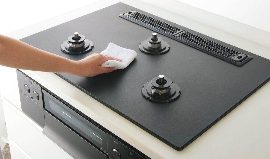 - 温度が上がりにくいアルミ製トッププレート「ラックリーナ」だから、バーナー廻りの焦げつきを低減。汚れが拭き取りやすく、毎日のお手入れに手間がかかりません。